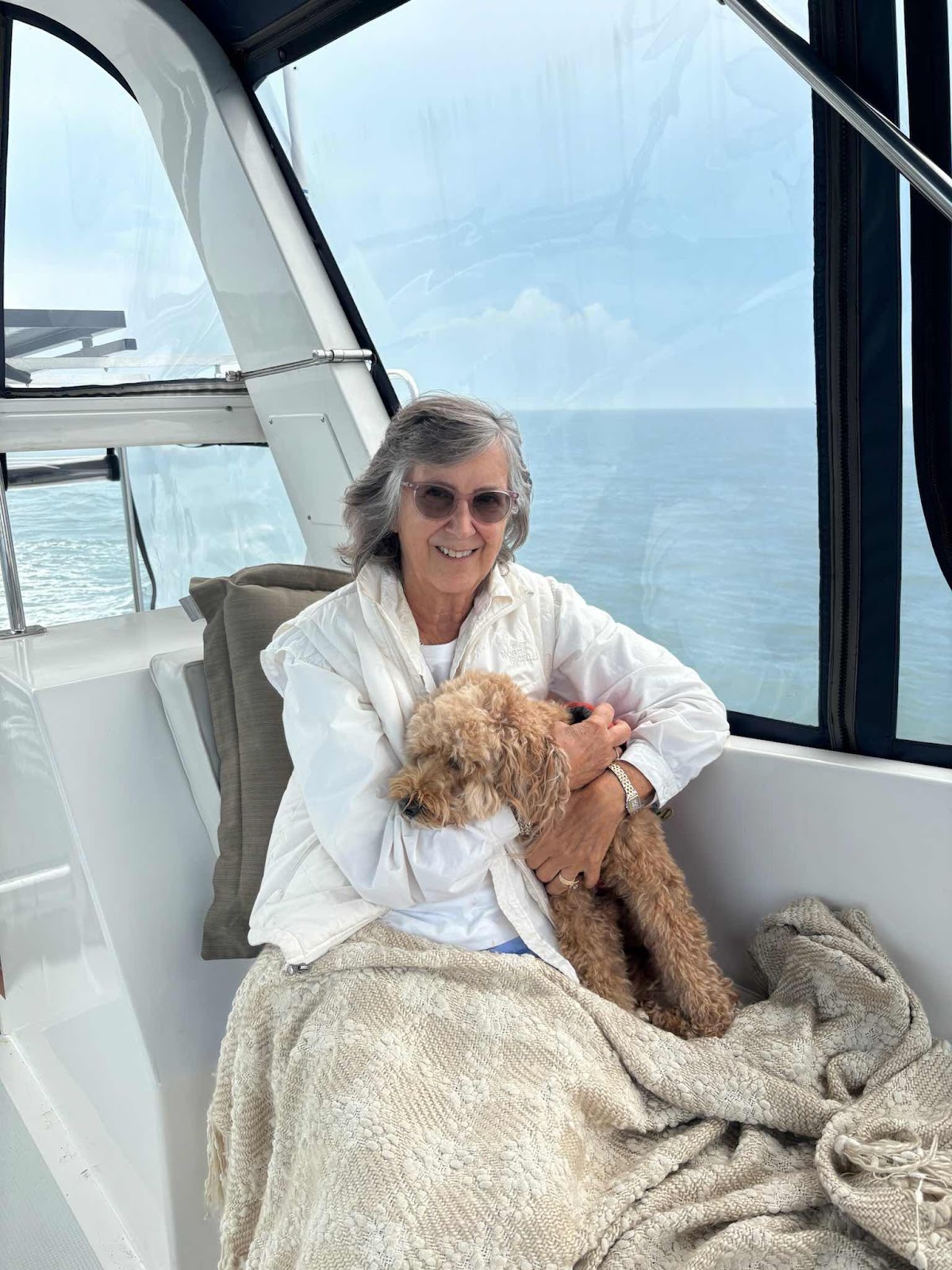Although the waves and wind were pretty calm, being on the open ocean can sometimes make one feel a little queasy. Archie stayed glued to me the whole voyage and it wasn’t one of those easy days when I could read or knit, so we just hunkered down and made the best of it.