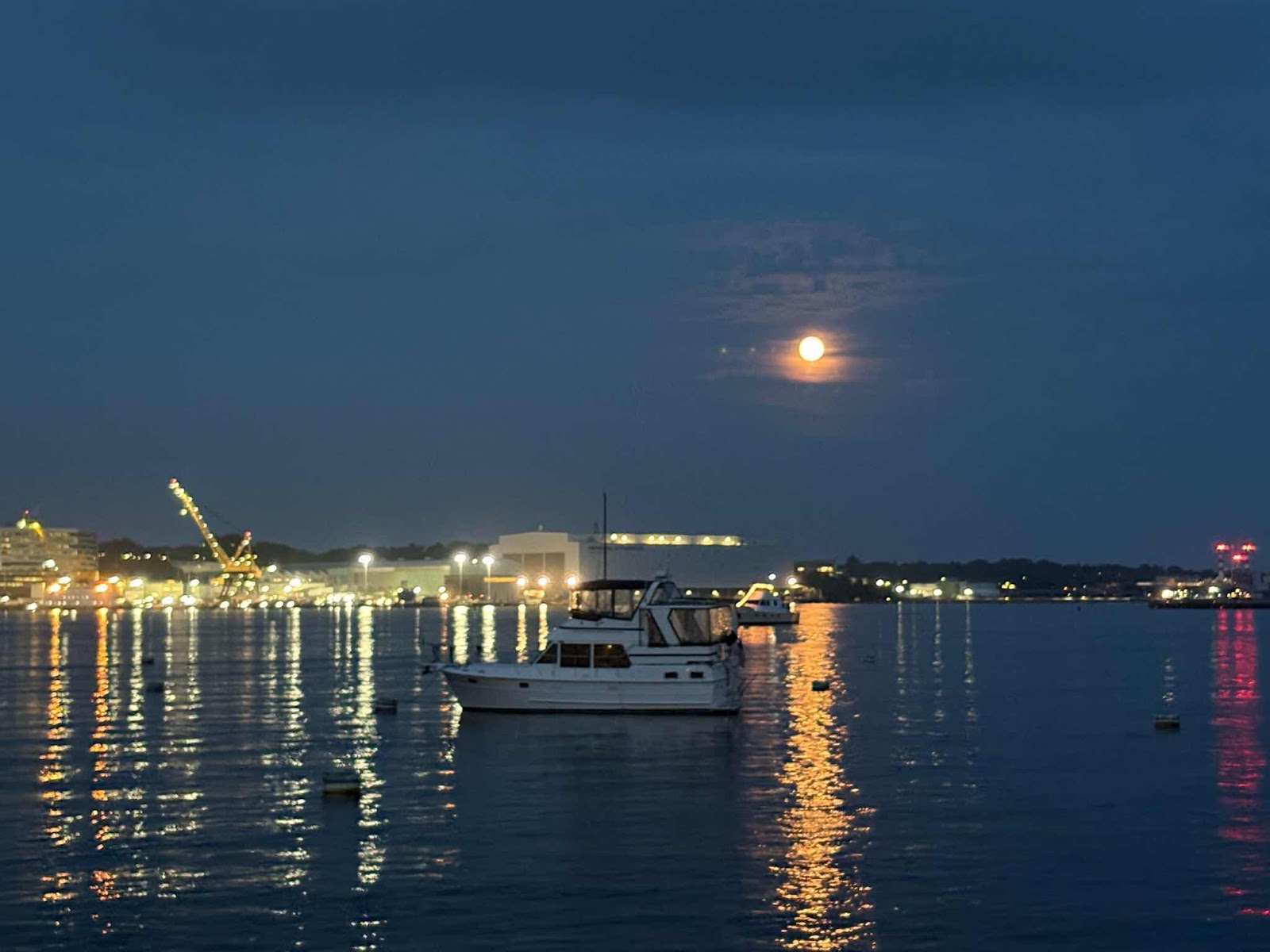 That evening we defrosted one of our leftover chicken dinners and enjoyed it with some fresh summer squash. Later on we laid out on the foredeck on a beautiful night with a full moon listening to an array of songs that made up the soundtrack of our youth.